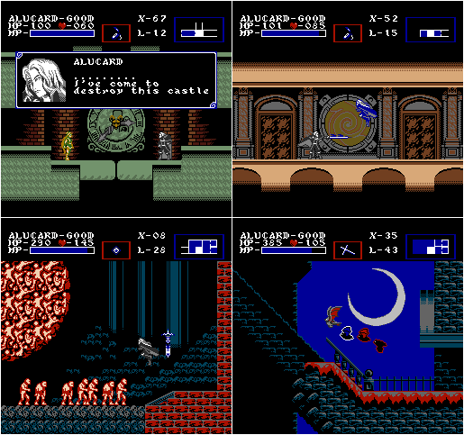 These are some spriteworks done by me, depicting SotN if it had been ported to the NES. A "demake" if you will. Some considerations are important:
